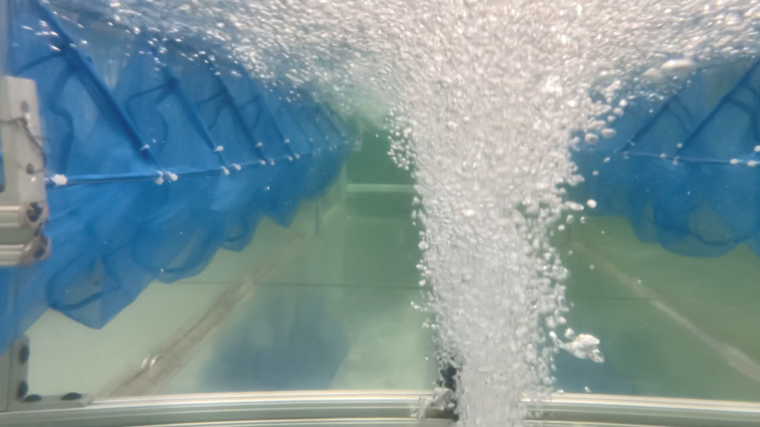 Bubble curtains are created by injecting air through a diffuser placed at the bottom of a stream, forming barriers of rising air bubbles. As the bubbles interact with the flow, they produce distinct flow features. While this technology has been used to capture floating plastics in low-speed streams, it shows promise for capturing or deterring invasive fish species.