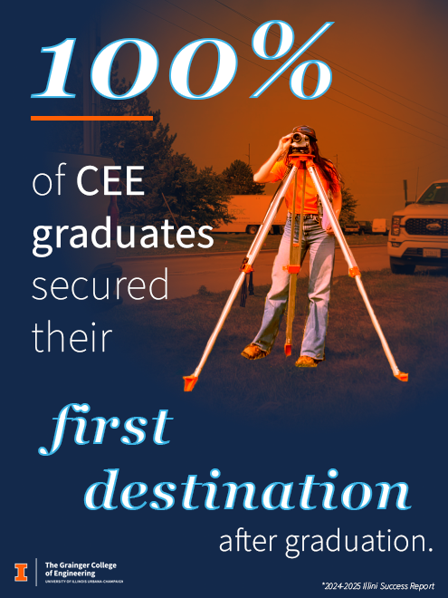 100% of civil and environmental engineering students were employed or enrolled in a continuing education program upon graduation, the newly published Illini Success Report shows.