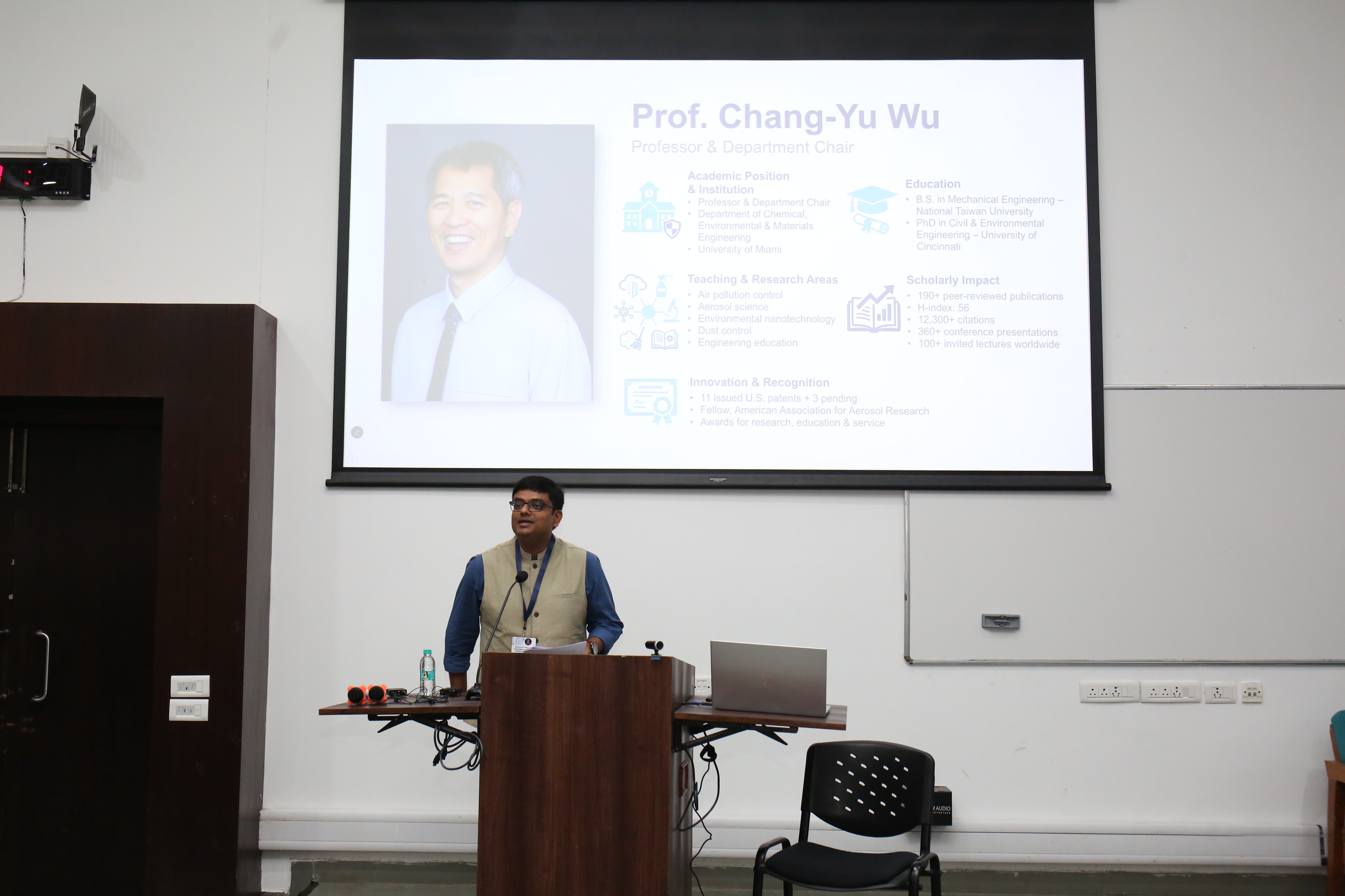 Professor Sameer Patel introducing University of Miami professor Chang-Yu Wu, an invited guest speaker at the workshop.