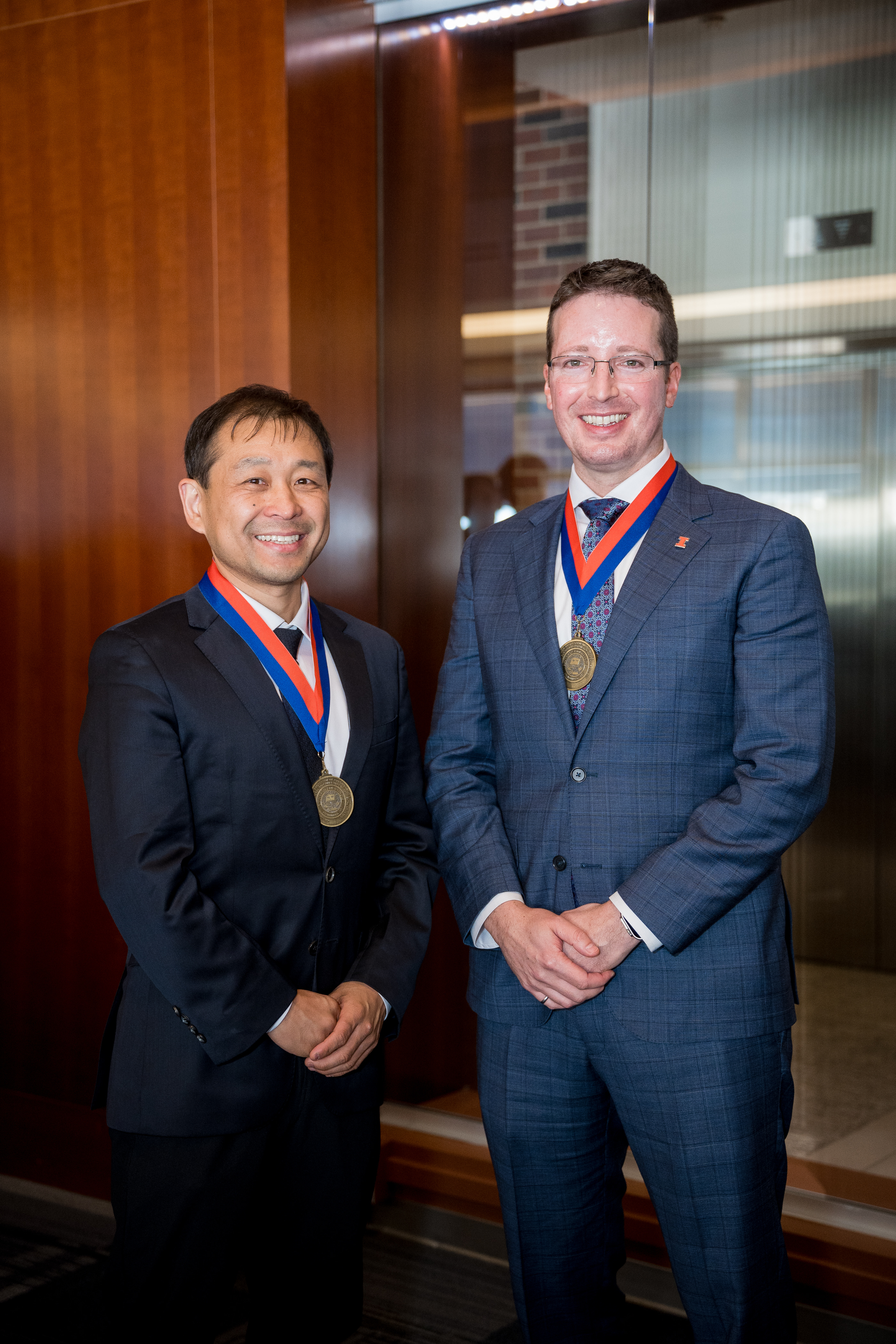 “With this dual investiture, we recognize the contributions of these two outstanding faculty members,” said Grainger College of Engineering Executive Associate Dean Philippe Geubelle. “We also celebrate a model for how the University of Illinois can address pressing societal challenges through collaboration, partnership, and shared vision.”
