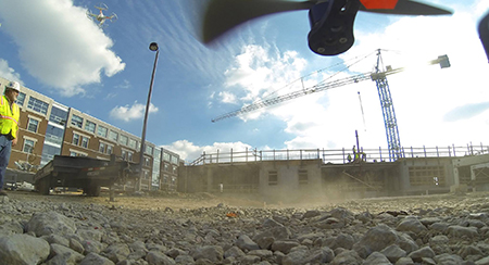 Students bring the UAVs to a construction site on the University of Illinois campus.