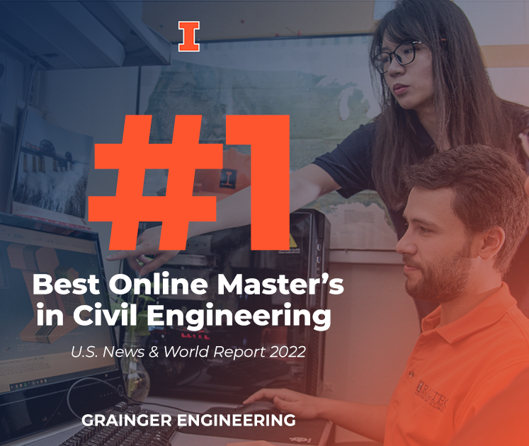 For the third year in a row, CEE at Illinois has been named the No. 1 online civil engineering master’s degree program by U.S. News & World Report. CEE at Illinois has held the No. 1 position since online program rankings began in 2020.