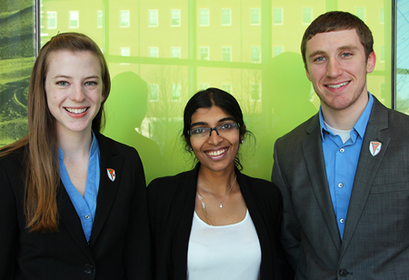 Three CEE students are among those selected as 2014 Knights of St. Patrick, an annual award given by the College of Engineering to students who represent leadership, excellence in character and exceptional contribution to the college and its students. CEE students Rachel Gross, Patrick Kennedy and Reshmina William will be honored along with seven other winners at the annual Knights of St. Patrick Ball in March.