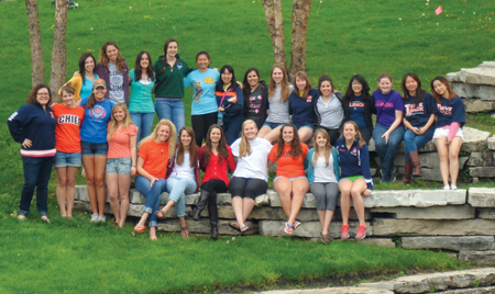Female classmates reunite as seniors for group photo, four years after matriculating.