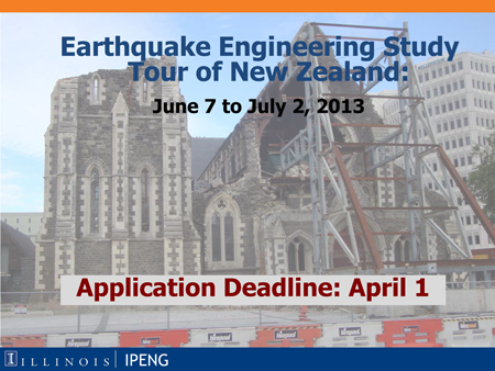 The tour should be highly educational in regard to earthquake engineering research and practice in New Zealand following their recent swarm of seismic activity, Abrams said. The potential for interships or employment upon graduation shall also be good through networking with New Zealand practitioners who currently see a large demand for engineering talent as Christchurch is being reconstructed, he said.