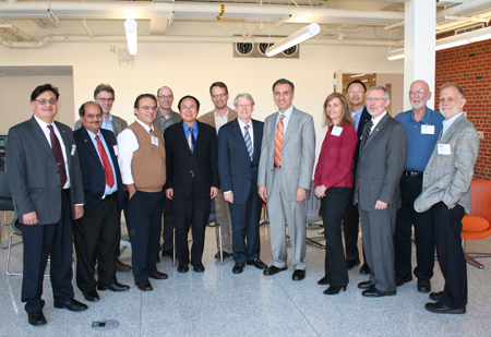 The external review team poses with CEE faculty (left to right): CEE Professor Imad Al-Qadi; CEE Professor Praveen Kumar; CEE Professor and Associate Head for Graduate Affairs Al Valocchi; CEE Professor Benito Mariñas; CEE Professor Charlie Werth; Henry T. Yang, Chancellor, University of California at Santa Barbara; CEE Professor Bill Spencer; David E. Daniel, President, University of Texas at Dallas; CEE Professor and Head Amr S. Elnashai; Lisa Alvarez-Cohen, Fred and Claire Sauer Professor of Environmental Engineering and Chair, Department of Civil and Environmental Engineering, University of California, Berkeley; CEE Professor and Associate Head for Undergraduate Affairs Liang Liu, Glen T. Daigger, Senior Vice President and Chief Technology Officer, CH2M Hill, Denver, Colo.; Robert L. Street, Campbell Professor Emeritus, Department of Civil and Environmental Engineering, Stanford University; and William. F. Marcuson III, Chair, President of W. F. Marcuson III and Associates Inc., Vicksburg, Miss.