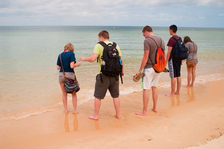 GLCM students (from left) Margeaux Goff, Chas Crump, Matthew Sullivan, Ryan Altemare and Ana Lucuta enjoy the beach near Brisbane. Photo by Pedro Alvarez, GLCM student.