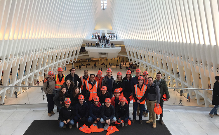 Above: Students from the Global Leaders in Construction Management program toured the Oculus, the new transit hub at the World Trade Center in Manhattan in March 2018.