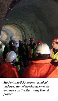 The trip took students to 13 construction sites over seven days, including the Izmit Bay Suspension Bridge project, which is the largest Build-Operate-Transfer project in Turkey. When the bridge is complete, it will be the second-longest suspension bridge in Europe and the fourth longest in the world.