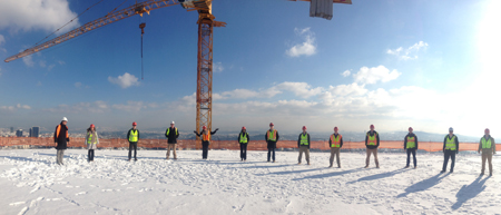 Students pose on the 30th-floor helipad at the Zorlu Center, Istanbul.