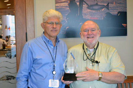 Professor Ed Herricks, right, received a Distinguished Service Award for his work in avian radar and other wildlife management systems at Seattle-Tacoma Airport. He is pictured above with Steve Osmek, a wildlife biologist at the airport.