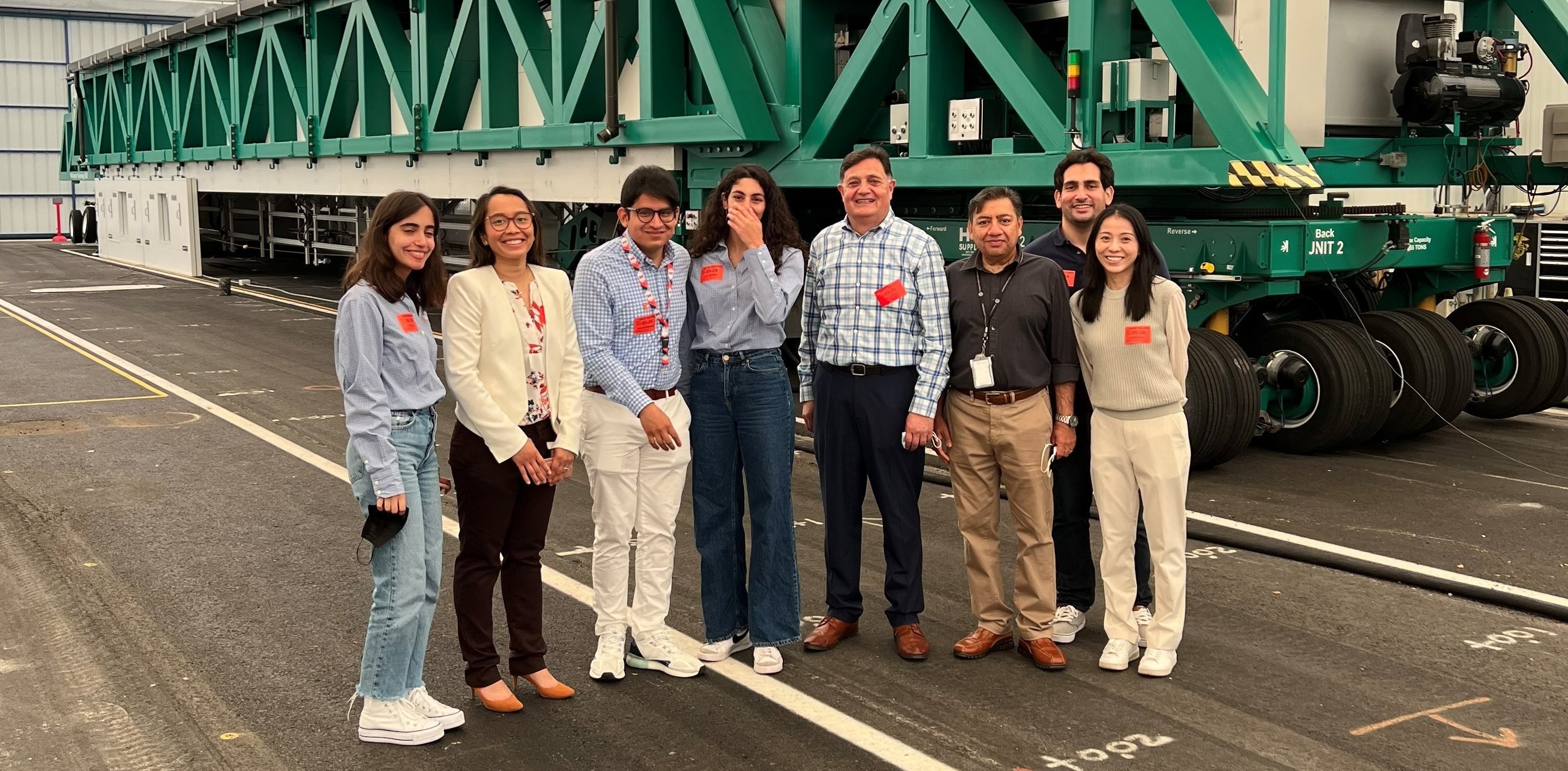 CEE graduate students Egemen Okte, Qingwen Zhou, Johann Cardenas, Lama Abufares and Lara Diab visited the facility with Imad Al-Qadi, ICT director and UIUC Bliss Professor of Engineering, and Angeli Jayme, CEE research scientist.