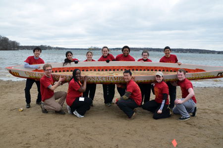 This year’s team poses with their canoe at the regional competition at Trine University in Indiana. Photo: Roman Vovchak