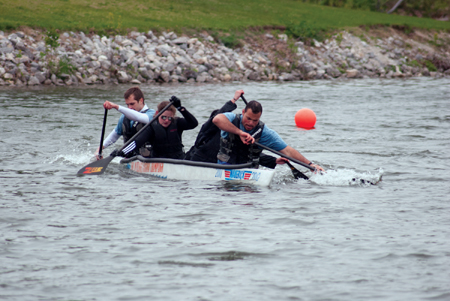 Members of last year’s concrete canoe team race at the 2012 regional competition.