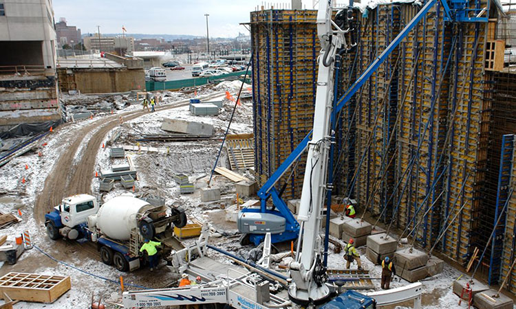 Above: A self-consolidating concrete wall under construction at OSF Saint Francis Medical Center in Peoria, Ill.