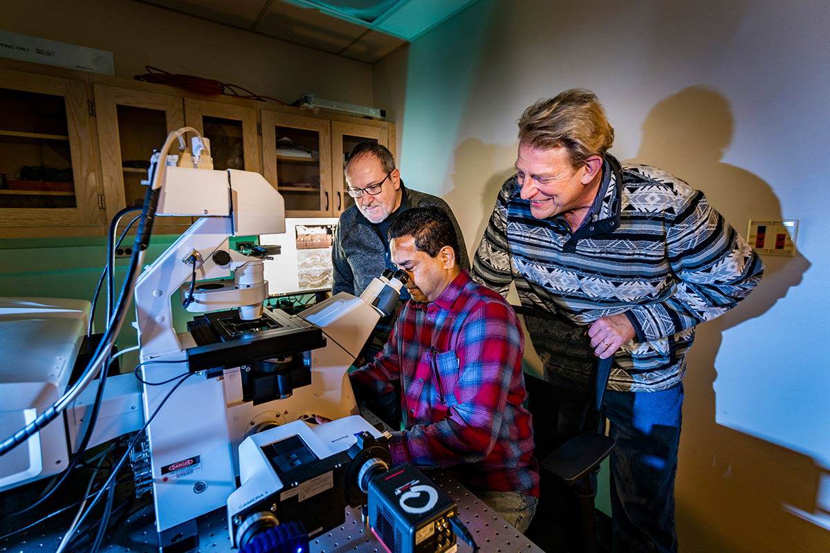 Fouke’s specialty is interpreting how microbes thriving in mineral-rich waters influence the crystalline architecture of travertine and other similar mineral deposits in nature. His group has worked extensively to reveal the geologic history of layered mineral formations – yielding inferences to life on Mars via Yellowstone to coral reefs in Australia – and even inside the human body.