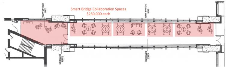 The Kavita and Lalit Bahl Smart Bridge will be a highlight of the new construction and a new campus landmark. The bridge will be a living laboratory featuring the latest innovations in infrastructure sensing, a showcase for sustainable energy and environmental design options, and an instructional tool to teach students about the effects of dynamic forces on the built environment.