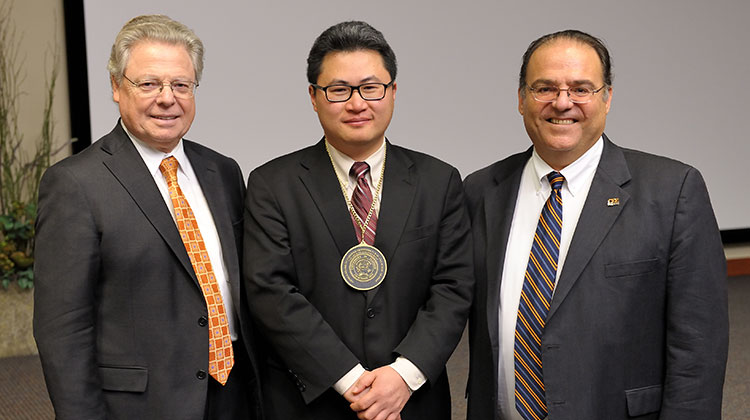 Professor Yanfeng Ouyang was invested Dec. 7 as the first holder of the George Krambles Endowed Professorship in Rail and Public Transit. The professorship is named for a 1936 graduate of University of Illinois at Urbana-Champaign who dedicated his career to the advancement of urban transportation engineering.