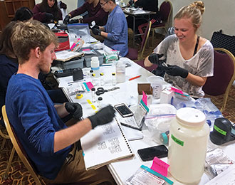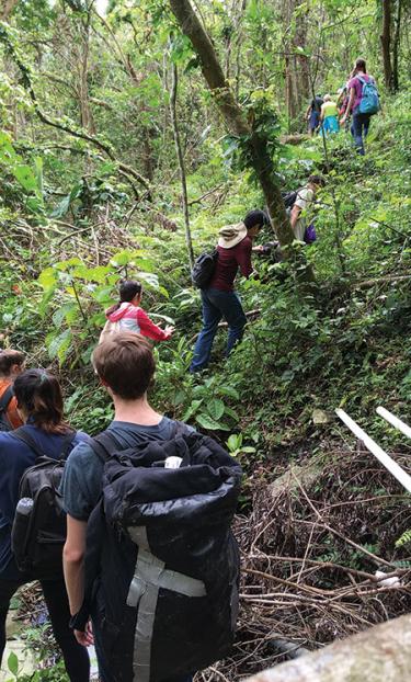 The travel team visited three rural areas: Corea Metralla in the Peñuelas municipality, Los Duros in the Orocovis municipality, and Sierritas in the Villalba municipality. In each location, a local guide led them on a hike through the hills to the water sources for each community. Mariñas said that in Puerto Rico, it is not uncommon to find that community members run pipes straight from mountain springs or streams into the village, without any sort of water treatment. The students took water samples from the sources, which were later analyzed using equipment left behind in the hotel rooms.