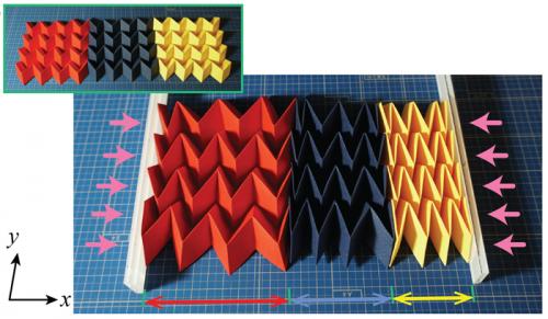“Before this work, there has been no systematic study on the influence of imperfections on origami-based metamaterials, because it is such a new field,” they wrote. “However, eventually, if we want to take advantage of the origami-based metamaterials and use them in engineering applications, we must know how their performance is going to be affected by inevitable imperfections induced during manufacturing and during service.”