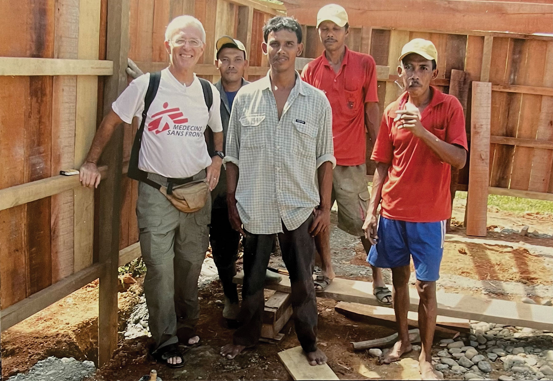 The time spent in Meulaboh was exhausting and exhilarating, challenging and extremely rewarding. Meulaboh is almost on the equator; very hot, humid and, during my stay, without electricity for the short wave communications we had installed. MSF was involved in restoring local health clinics in Meulaboh and nearby communities. We worked building wells and water/wastewater and solid waste disposal facilities at the health clinics. There were many NGOs in Meulaboh in addition to MSF. One, for example, was Catholic Relief Services (CRS), whose personnel were also installing drinking water wells. Prior to the tsunami, most wells were shallow, so when the tsunami came ashore, many of the wells were filled with salt water, rendering them unusable. CRS brought in large drilling rigs to install deeper wells. We, however, did not have that equipment, so our wells were smaller, shallower, dug by hand and using locally made rigs. Another of MSF's main functions was to provide work for the Indonesian people. There were about 10 expatriate MSF workers from Australia, Canada, Germany, the United Kingdom, Austria, Uzbekistan, Sudan and the United States. They included doctors, mental health professionals, nurses, engineers, a logistician and administrative staff. The national staff of about 100 were employed as drivers, guards, cooks, custodial and construction workers.