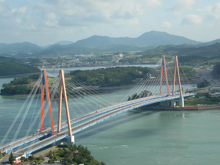 The Jindo Bridge in South Korea, which connects the mainland to Jindo Island.